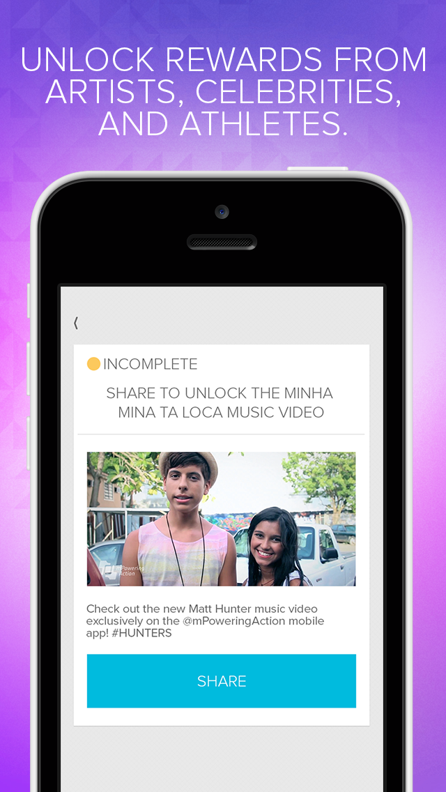 The app also gave youth an easy way to learn and connect with new Organizations and Social Causes. Exclusive content from Artists and Celebrities around the world were given as a reward and thank you for taking action towards a cause.